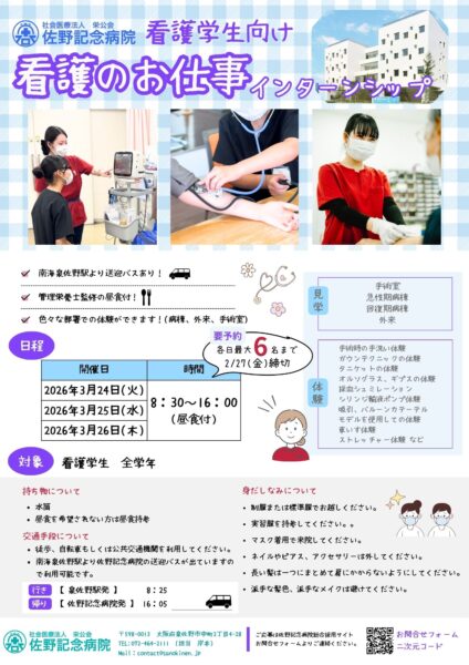 この度、春休みの期間中に「看護学生向け」インターンシップの機会を設けました。